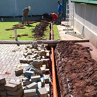 Reforma de todo o sistema de esgotos e fossas (06) do hotel e escritório, em atendimento a reclamação de hóspedes, pela presença de insetos e ainda a identificação de fossas cheias, tubulações furadas e entupidas e caixas de esgoto desmoronadas e não visíveis (estavam a uma profundidade de aproximadamente 40 cm do piso do estacionamento, garagem e gramado). Em alguns locais, faltavam as caixas e tinham sido utilizadas tubulações com cotovelo 90 graus, além de algumas estarem conjuntas com a caixa de gordura da cozinha do hotel, o que causava mau cheiro frequente. Foram todas reformadas e devidamente reparadas, de modo a ficarem visíveis e facilitarem futuras limpezas;