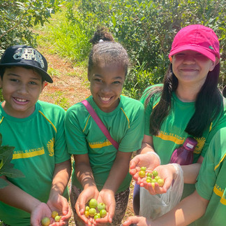Alunos ‘catam’ guavira no pomar do Cepaer e aprendem sobre fruta símbolo de MS